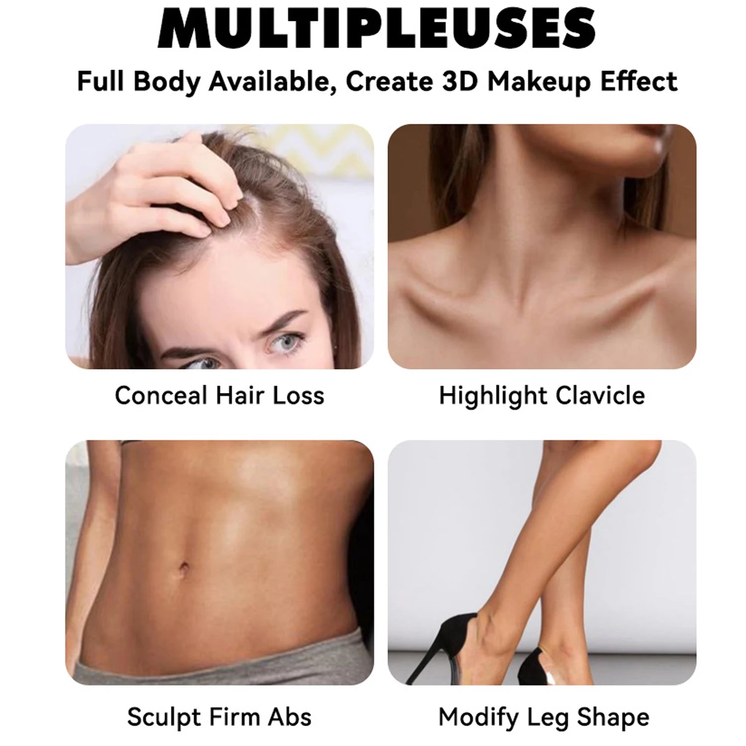 ✔️ 2-en-1 pratique : un côté bronzant pour structurer et définir vos traits, l’autre côté highlighter pour apporter éclat et lumière.