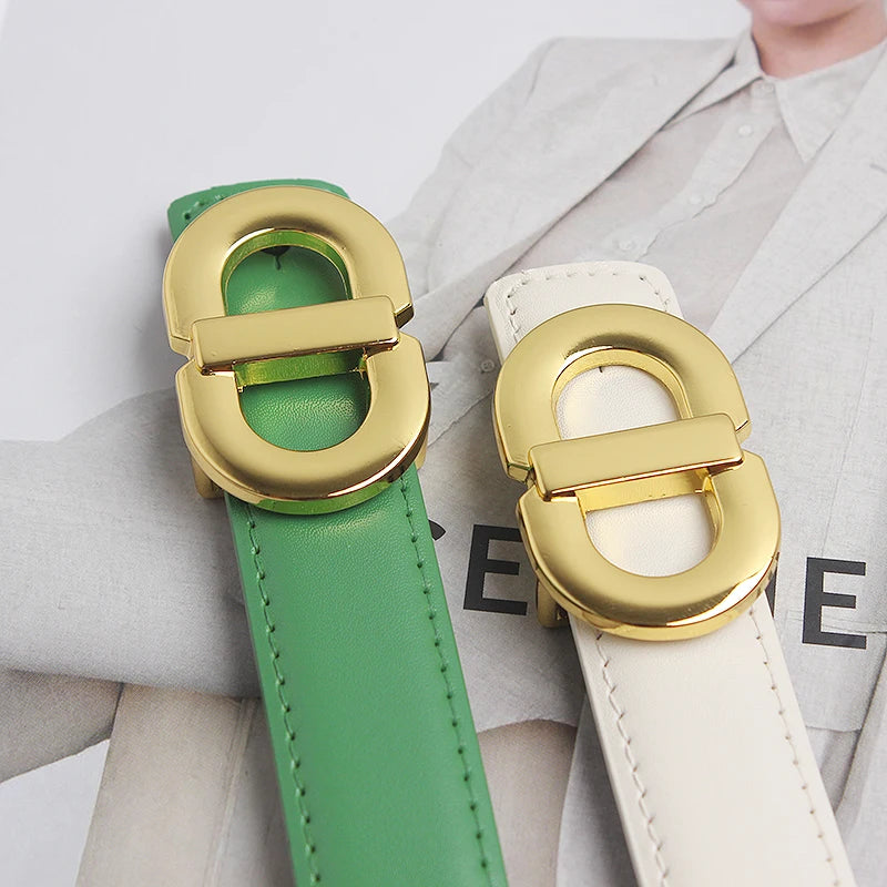 Ceinture Femme en Cuir Véritable – Boucle Dorée Élégante, Largeur 2,3 cm, Style Chic & Intemporel